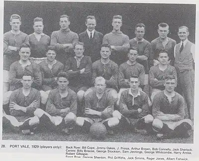 - 1 2 3 4 5 6 7 8 9 10 11 12 13 14 15 16 17 18 19 20 21 22 23 24 25 26 27 28 29 30 31 32 33 34 35 36 37 Kent, Jeff (1990). "From Glory to Despair (1929–1939)". The Valiants' Years: The Story Of Port Vale. Witan Books. pp. 124–150. ISBN 0-9508981-4-7.