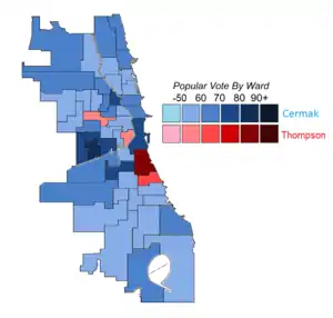 Cermak carried 45 wards, while Thompson carried five.[7] The five wards that Thompson carried all had sizable black populations.[7]