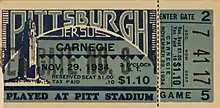- ↑ "Pitt Cuts Ticket Prices For Kids". The Pittsburgh press. September 23, 1934. p. Sports 3. Retrieved February 17, 2022 – via Newspapers.com.