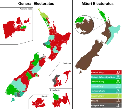 Four of those were Māori electorates, and those elections were held on 26 November.[5] 19 candidates contested the four available positions, and in three out of four cases, the incumbents were returned.[6][7]