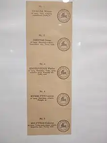 - ↑ Kamuntavičius, Rūstis; Vaida Kamuntavičienė; Remigijus Civinskas; Kastytis Antanaitis (2001). Lietuvos istorija 11–12 klasėms (in Lithuanian). Vilnius: Vaga. pp. 385–386. ISBN 5-415-01502-7.