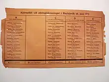Parliamentary elections were held in Iceland on 29 June 1937.[1] Although the Independence Party won a plurality of votes, the Progressive Party emerged as the largest party in the Lower House of the Althing, winning 12 of the 33 seats.