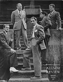 On March 15, 1938, Coach Sutherland began his 15th and last spring practice on the Trees practice field. Sixty players showed up for the first day of drills.[21] The "Dream Backfield" was formed when Marshall Goldberg approached coach Sutherland: "Dr. Sutherland, I know the team needs a fullback. Dick Cassiano is a wonderful halfback. Why not let him take my place at that position, and make a fullback out of me?" Sutherland countered that Goldberg was an All-American halfback and might sacrifice that rating his senior year if he switched positions. Goldberg answered: "Oh, that's all right, if you think I can give the team what it needs at fullback, I don't mind if I'm not named All-American again."[22] Two weeks into drills the squad was reduced by the new rules concerning academics. According to The Pitt News: "Somewhere between twelve and twenty-three varsity gridmen were declared ineligible at least for the all-important spring drills." Starting tackle Ted Schmidt and second string tackle George Musulin were dismissed from the squad because they violated the newly instituted eight semester rule.[23] After five and a half weeks of drilling, the annual alumni versus varsity game officially closed the session. The varsity prevailed 21–0. Sophomore halfback Robert Thurbon scored two touchdowns and halfback Emil Narick tallied one to lead the varsity attack.[24]
