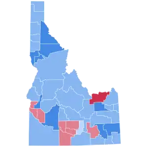 | Twin Falls | 7,286 | 44.56% | 9,031 | 55.23% | 34 | 0.21% | -1,745 | -10.67% | 16,351 |