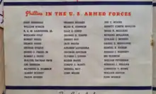 1945 Phillies program listing team members serving in World War II