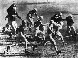 - ↑ "About 12 inches to go", according to announcer Bill Stern (Game broadcast).