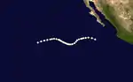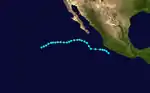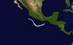 On June 17, an area of low pressure was identified on surface weather maps just off the coast of Guatemala.[5] The following day, the system was classified as a tropical storm approximately 210 mi (340 km) southwest of Guatemala City. Tracking generally northwest, the system acquired maximum sustained winds of 50 mph (85 km/h). On June 20–21, the storm moved parallel to the Mexican coastline before turning north on June 22. It was last noted offshore on this day, approximately 50 mi (85 km) south of Lázaro Cárdenas, Michoacán.[6]