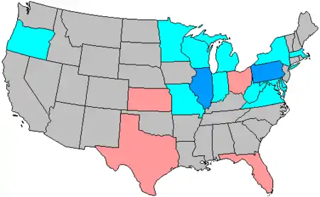 - ↑ Bullock, Charles S.; Rozell, Mark J. (2007). The New Politics of the Old South: An Introduction to Southern Politics. Rowman and Littlefield. p. 272. ISBN 0742553442.