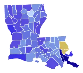 ![]() Parish results Ellender: 30–40% 50–60% 60–70% 70–80% 80–90% >90% Ellis: 50-60% | |||||||||||||||||