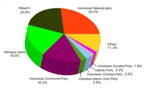 | Indonesian National Party | 8,434,653 | 22.32 | 57 | |