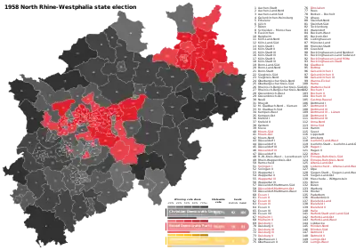 The 1958 North Rhine-Westphalia state election was held on 6 July 1958 to elect the 4th Landtag of North Rhine-Westphalia. The outgoing government was a coalition of the Social Democratic Party (SPD), Free Democratic Party (FDP) and Centre Party led by Minister-President Fritz Steinhoff.