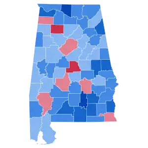 The combined Democratic candidates were the first to win the counties of Baldwin, Blount, Macon, Mobile and Shelby since Adlai Stevenson II in 1952.
