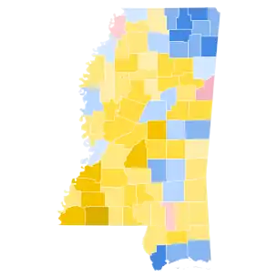 | Hinds | 5,811 | 20.05% | 11,083 | 38.23% | 12,094 | 41.72% | -1,011[lower-alpha 3] | -3.49% | 28,988 |