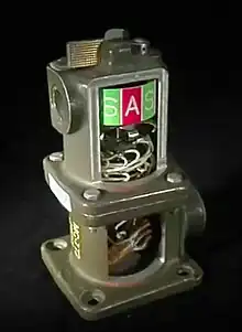 - ↑ The MC-788 High Voltage Safing System was a switch that "would prevent high voltage from reaching the X-unit so that if a fire or extreme heat ignited the high-voltage batteries, no harm would result." It was not, in other words, an independent Arm/Safe switch separate from the MC-772; the MC-722 would pass the 28-volt signal of the low-voltage batteries to the MC-788, which would close its connections and allow the high-voltage batteries to pass their 2500-volt signal to the X-Unit. Sandia National Laboratories 1968, p. 11. Another more general explanation of this system is in a later review of safety innovations at Sandia at this time: "Motor-driven safing switches incorporated into bombs, called 'ready-safe' switches, were operated by the pilot moving a control knob in the cockpit. Switches capable of holding off in excess of 2500 volts were required for those systems... which had incorporated high voltage, thermally activated batteries. Systems which used low voltage power sources and some type of voltage step-up technique could use low voltage switches for the safing switch. Both high and low voltage sating switches had motor-driven contacts that would close when a 28-volt signal was applied." Brodie 1987, p. 11.