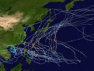 40 tropical depressions formed this year in the Western Pacific, of which 35 became tropical storms. 21 storms reached typhoon intensity, of which a record-tying 11 reached super typhoon strength and 8 reached category 5.