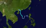 A surge in the southern hemisphere indraft developed into Tropical Depression 11W on June 12 to the east of the Philippines. It tracked west-northwestward, quickly strengthening to a tropical storm that day and a typhoon on the 13th. Dinah continued to quickly intensify as it turned to the northwest, and attained a peak of 185 mph on the 17th to the northeast of Luzon. Its southerly inflow was cut off, and Dinah weakened as it turned to the north. It hit southern Taiwan on the 18th as a 140 mph typhoon, and weakened greatly over the island to a tropical storm. At this time, Dinah exhibited a rare false radar eye. Dinah turned to the northeast, where it became extratropical near Japan on June 20. The storm killed 45 people on its path, and destroyed 5000 homes on Taiwan.