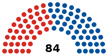 84 seats in the Parliament 43 seats needed for a majority | ||||||||||||||||||||||||||||||||||