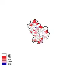 Christian Democracy was by far the largest party, gaining almost twice the share of vote of the Italian Communist Party, which came distantly second. After the election Christian Democrat Vincenzo Verrastro was elected President of the Region.