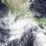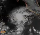 Ignacio turned north and then veered sharply east, entering colder waters. Subsequent reconnaissance of the storm found various changes to its internal structure, including a pinhole eye down to 6 miles (9.7 km) in diameter before it ultimately became ill-defined. Ignacio accelerated toward the Mexico coastline, and around 12:00 UTC on October 30 struck about 160 miles (260 km) east-southeast of Manzanillo, Colima, with much-weakened winds of 35 mph (56 km/h).[3] It transitioned into an extratropical cyclone six hours later, then dissipated over the Yucatán Peninsula the next day.[5][3]