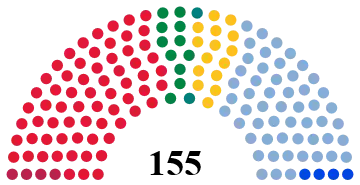 All 155 seats in the Storting 78 seats needed for a majority | |||||||||||||||||||||||||||||||||||||||||||||||||||||||||||||||||||||||||||||||||||||||||||||||||