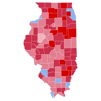 As of 2020, this is the last time a Republican presidential candidate won over 1 million votes in Cook County, the state's most populous county. The presidential election of 1984 was a very partisan election for Illinois, with over 99% of the electorate voting only either Democratic or Republican, though several other parties did appear on the presidential ballot in the State.[1] Nearly every county in Illinois voted in majority for Reagan. One notable exception to this trend was Chicago's highly populated Cook County, which voted in majority for Mondale, albeit with a 2.6% margin, or 51% to 48.4%. 1984 marks the last time any presidential candidate won Cook County with a single-digit margin, and the last election that a Republican won over a million votes in that county. Fulton, Henderson, Knox, Mercer, and Putnam Counties would not vote Republican again until 2016.
