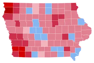 Iowa weighed in for this election as 11 points more Democratic than the national average. As of the 2020 presidential election, this is the last election in which Scott County (Davenport), Black Hawk County (Waterloo), Linn County (Cedar Rapids), and Story County (Ames) voted for a Republican presidential candidate.[2] Mitchell, Muscatine, Buchanan, Chickasaw, Clarke, Clayton, Clinton, Floyd, Jackson, Howard, Jones, and Tama counties would not vote Republican again until 2016. Iowa would not vote Republican again until 2004.