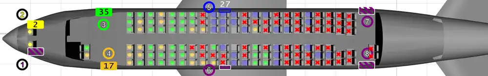 More difficulties were encountered at the overwing exits. The left overwing exit was blocked by smoke and flames. The passenger seated at the right overwing exit had difficulty understanding how to operate the hatch. At that time, no requirement existed that exit-row passengers receive a briefing on how and when to open the hatch.[2]: 135 Once the 22 kg (48 lb) hatch was released, it fell inward onto the passenger seated next to it, trapping her. Two passengers lifted the hatch and put it on a seat in the next row back, making the exit available for use 45 seconds after the aircraft had stopped.[2]: 136 Once the hatch had been removed, passengers still encountered difficulties in getting to and using this exit. The exit-row seats allowed only 27 cm (10.5 in) to pass through, the armrests between those seats remained down, and the exit was directly over a seat, requiring passengers to manoeuvre awkwardly to escape.[2]: 43, 136–137, 180 Passengers in the rear of the aircraft were panicking as smoke, and eventually flames, filled the hot cabin at about the same time the right overwing exit was opened. Passengers crawled over seat backs to get to the right overwing exit as well as the two front exits; some survivors told investigators that the aisle had become blocked with bodies.[2]: 137–138
