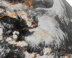 ![]() Satellite image of the system over the Greater Antilles | |