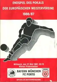 The 1987 European Cup final was a football match held at the Prater Stadium, Vienna, Austria, on 27 May 1987, that saw FC Porto of Portugal defeat Bayern München of West Germany 2–1. Both sides were missing key players: the Portuguese were without their injured striker Fernando Gomes, while the Germans were missing their sweeper and captain Klaus Augenthaler, who was suspended, along with striker Roland Wohlfarth and midfielder Hans Dorfner, who were both injured.