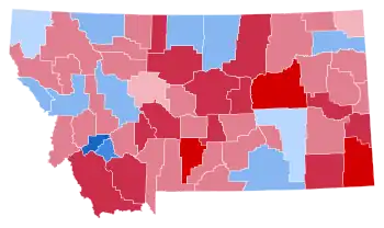 Bush won by a margin of 5.87%, much less than usual in this typically solid Republican state, largely due to the persistent drought and Farm crisis on the Great Plains, a result making Montana 1.93% more Democratic than the national average. Since 1916 this is the solitary election when Blaine County, one of the most consistent bellwether counties in the nation, has supported a losing presidential candidate; Bush is thus the only Republican to win the White House without carrying this county.[1] It is also the last time Montana has voted more Democratic than the nation at-large and one of only three since 1952 (along with 1956 and 1972),[2] and the last occasion northwestern Lincoln County has supported a Democratic Presidential nominee.[3] Thus, Iowa (with four counties), Texas (with three), and Montana (with one) are the only states containing counties that Dukakis (as of 2020) was the last Democrat to carry.