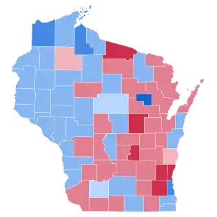 The election was very partisan, with over 99 percent of the electorate voting for either the Republican or Democratic parties, although five additional candidates were on the ballot.[3] Dukakis and Bush almost evenly split Wisconsin's seventy-two counties – Dukakis won 37 and Bush won 35. Dukakis won the large urban counties containing Madison (Dane County), Milwaukee, Racine and Kenosha, alongside almost entirely Native American Menominee County and the heavily unionized Scandinavian-American counties of the northwest. Bush won the suburban "WOW counties" and the more conservative, historically German Catholic, counties of the rural eastern half of the state.[4] Over the state as a whole, Dukakis did best, as usual, in Menominee County, and Bush did best in Ozaukee County.