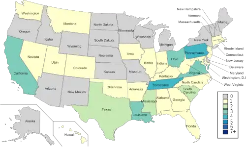 The forty-eight teams came from thirty-one states. Pennsylvania and Tennessee had the most teams with four each. Nineteen states did not have any teams receiving bids.[4]