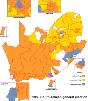 - ↑ South Africa: Parliamentary Chamber: House of Assembly: Elections held in 1989 Inter-Parliamentary Union