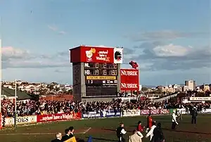 Final scoreboard at North Hobart after the 1990 TFL Statewide Grand Final shows a 58-point victory to Hobart over North Launceston.