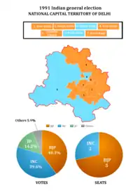 The Bharatiya Janata Party won 5 of the 7 seats in Delhi, with its opposition, the Indian National Congress winning 2 seats.[1]