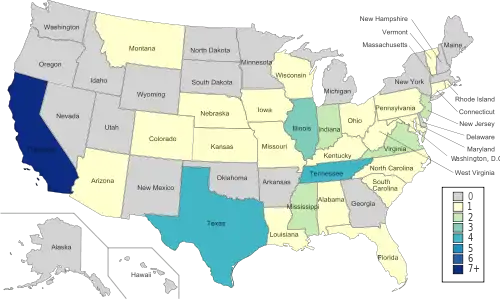 | 7 | California | Santa Clara, Stanford, UC Santa Barbara, California, Long Beach State, USC, UCLA |
