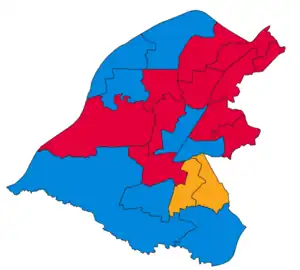 | Labour Party | 30,896 (41.0%) | 11 (52.4%) | 11 / 21 |