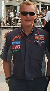 Johnny Herbert, who dropped to tenth place in the opening laps of the Grand Prix (picture taken in 2006 while an employee of the Midland F1 team)