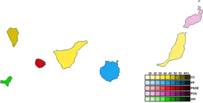 ![]() Constituency results map for the Parliament of the Canary Islands | ||||||||||||||||||||||||||||||||||||||||||||||||||||||||||||||||||||||||||||||||||