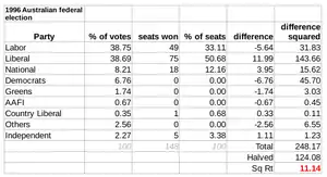 - ↑ Ros Kelly (Labor) had won Canberra at the 1993 election, however she resigned in 1995 and Brendan Smyth (Liberal) won the seat at the resulting by-election.