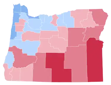 As of the 2020 presidential election, this is the last occasion when the Democratic Party candidate has carried Gilliam, Morrow and Coos Counties.[3] It is also the only occasion since 1968 when Gilliam County has voted for a Democrat, the last time any Eastern Oregon county sided with a Democrat, and the last time a victorious Democratic candidate would only win the state with a single digit margin of victory.