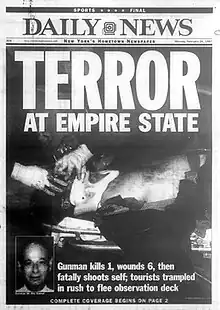 - 1 2 3 "Gunman shoots 7, kills self at Empire State Building". CNN. February 24, 1997. Retrieved May 15, 2011.