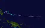 Isa developed from a disturbance in the monsoon trough near the Caroline Islands on April 12. It moved erratically at first, though after attaining tropical storm status it curved westward due to the subtropical ridge to its north. Isa very gradually intensified, and on April 20 the typhoon reached peak 1-min winds of 270 km/h (170 mph), as reported by the Joint Typhoon Warning Center; Japan Meteorological Agency reported maximum 10-min winds of 155 km/h (96 mph). After turning northward, it accelerated to the northeast, and merged with a larger extratropical cyclone on April 24.[7][8]