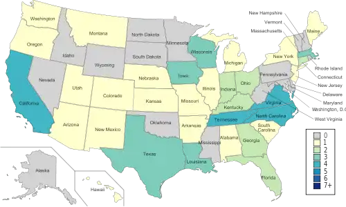 | 13 | Massachusetts | 59 | |||||||||||||||||