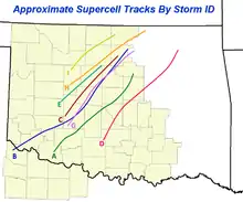 - 1 2 3 4 5 "The Great Plains Tornado Outbreak of May 3–4, 1999: Storm A Information". National Weather Service Forecast Office, Norman, Oklahoma. May 3, 2010. Archived from the original on February 11, 2017. Retrieved October 1, 2010.