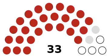 33 seats in the Parliament 17 seats needed for a majority | |||||
