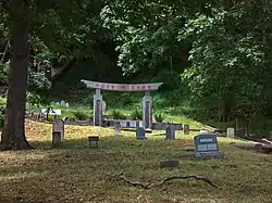 Newly constructed entrance gate to the historic Chinese section of Evergreen Cemetery in Santa Cruz, California