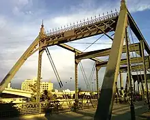 Around 1898, a plan surfaced to rebuild the bridge as a viaduct so that it would not cross only the river, but also the rail switching yard. However, the plan was defeated in June 1904.[5] The bridge has remained mostly unmodified since construction. Timber decking was replaced with corrugated steel following a 1961 flood and some bent hinges were replaced as a result of a 1965 flood.[8][lower-alpha 1] The 19th Street Bridge was listed on the National Register of Historic Places on February 4, 1985.[10]