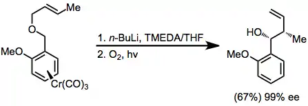 A highly enantioselective method employing chromium carbonyl complexes involves the use of the acidified phenyl ring as an anion-stabilizing group.[15]