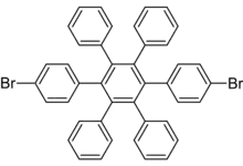 2,5-Bis(4-bromophenyl)-3,4-diphenylcyclopentadienone reacts with diphenylacetylene in benzophenone or diphenyl ether as solvent, in a Diels-Alder reaction, to form 1,4-bis(4-bromophenyl)-2,3,5,6-tetraphenylbenzene, a variant of hexaphenylbenzene with 2 bromine atoms on the para positions of opposite phenyl rings.[2]